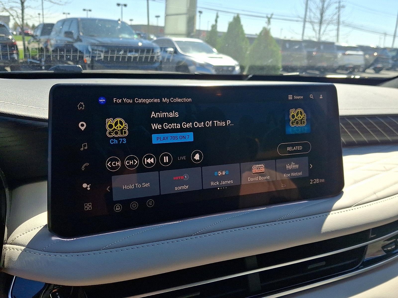 - Radio: Klipsch Reference Premiere Audio System -inc: 20 speakers w/individual audio, INFINITI InTouch 12.3" interactive display, Google built-in w/navigation: Google Assistant, Playstore, maps and data, SiriusXM satellite radio, wireless Apple CarPlay, wireless Android Auto, advanced voice recognition (one shot VDE, Natural Language Understanding (NLU)), INFINITI InTouch services and 5G Wi-Fi hotspot, Active Noise Cancellation (ANC) and 2 data capable type-C USB ports in front row