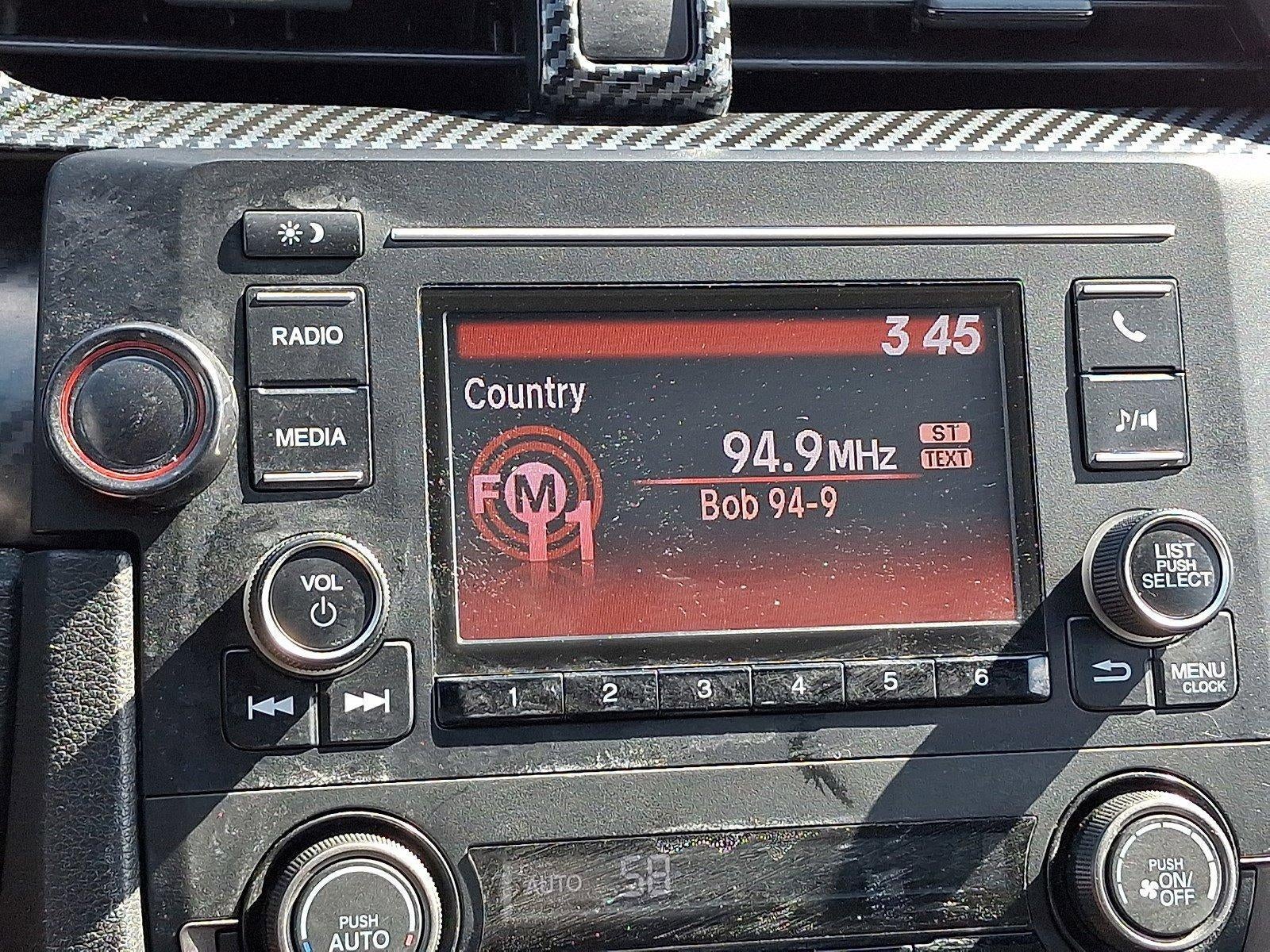 - Radio: 160-Watt AM/FM Audio System -inc: 4 speakers, 5-inch color LCD screen, Bluetooth® HandsFreeLink, Bluetooth® streaming audio, radio data system (RDS), speed-sensitive volume control (SVC), 1 USB audio interface 1.0-amp charging port in front, illuminated steering wheel-mounted audio controls and fin-type roof-mounted antenna
