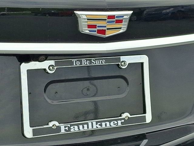 - Opens or closes when the system senses the key fob and the driver extends their foot under the left-hand side of the rear bumper over an image of the Cadillac Crest projected under the vehicle
