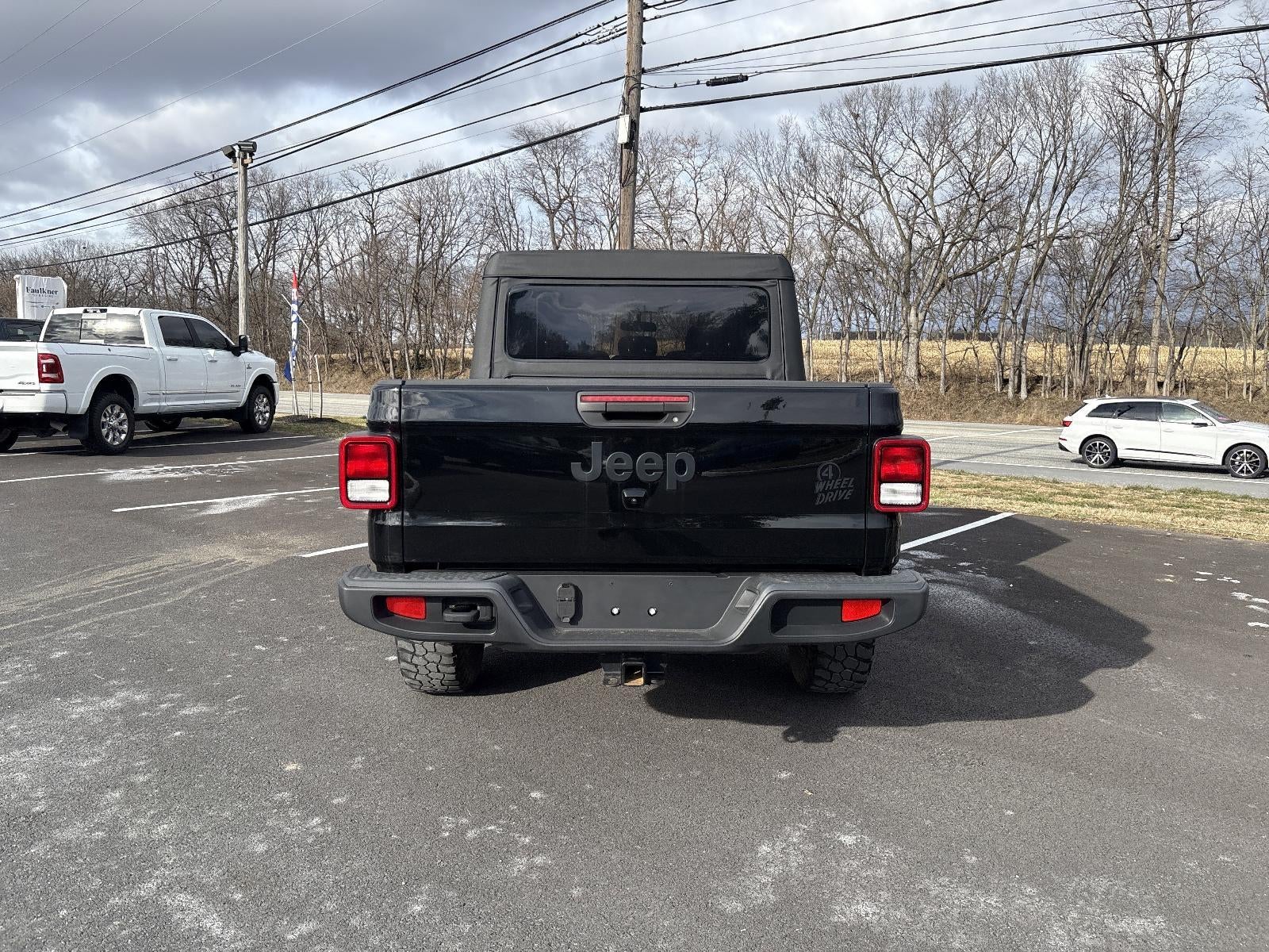 Recent Arrival! Certified. Priced below KBB Fair Purchase Price! Black Clearcoat This Gladiator Willys is nicely equipped with Quick Order Package 24K Willys Sport (DISC) (97 MPH Vehicle Max Speed Calibration, Anti-Spin Differential Rear Axle, and MOPAR All-Weather Slush Mats), Trailer Tow Package (240 Amp Alternator, Class IV Receiver Hitch, and Trailer Hitch Zoom), FCA US LLC Certified Pre-Owned Certified, 3.73 Rear Axle Ratio, 4-Wheel Disc Brakes, 4G LTE Wi-Fi Hot Spot, 8 Speakers, ABS brakes, Air Conditioning, AM/FM radio, Apple CarPlay, Apple CarPlay/Android Auto, Brake assist, Cloth Low-Back Bucket Seats, Compass, Delay-off headlights, Driver door bin, Driver vanity mirror, Dual front impact airbags, Dual front side impact airbags, Electronic Stability Control, Emergency communication system, Front anti-roll bar, Front Bucket Seats, Front Center Armrest w/Storage, Front fog lights, Front License Plate Bracket, Front reading lights, Google Android Auto, GPS Antenna Input, Integrated Center Stack Radio, Integrated roll-over protection, Integrated Voice Command w/Bluetooth®, Low tire pressure warning, MOPAR Spray In Bedliner, Normal Duty Suspension, Occupant sensing airbag, Outside temperature display, ParkView Rear Back-Up Camera, Passenger door bin, Passenger vanity mirror, Power steering, Radio data system, Radio: Uconnect 4 w/7" Display, Rear anti-roll bar, Rear reading lights, Speed control, Split folding rear seat, Steering wheel mounted audio controls, Tachometer, Telescoping steering wheel, Tilt steering wheel, Traction control, Trip computer, USB Host Flip, Variably intermittent wipers, and Wheels: 17" x 7.5" Black Steel Styled.