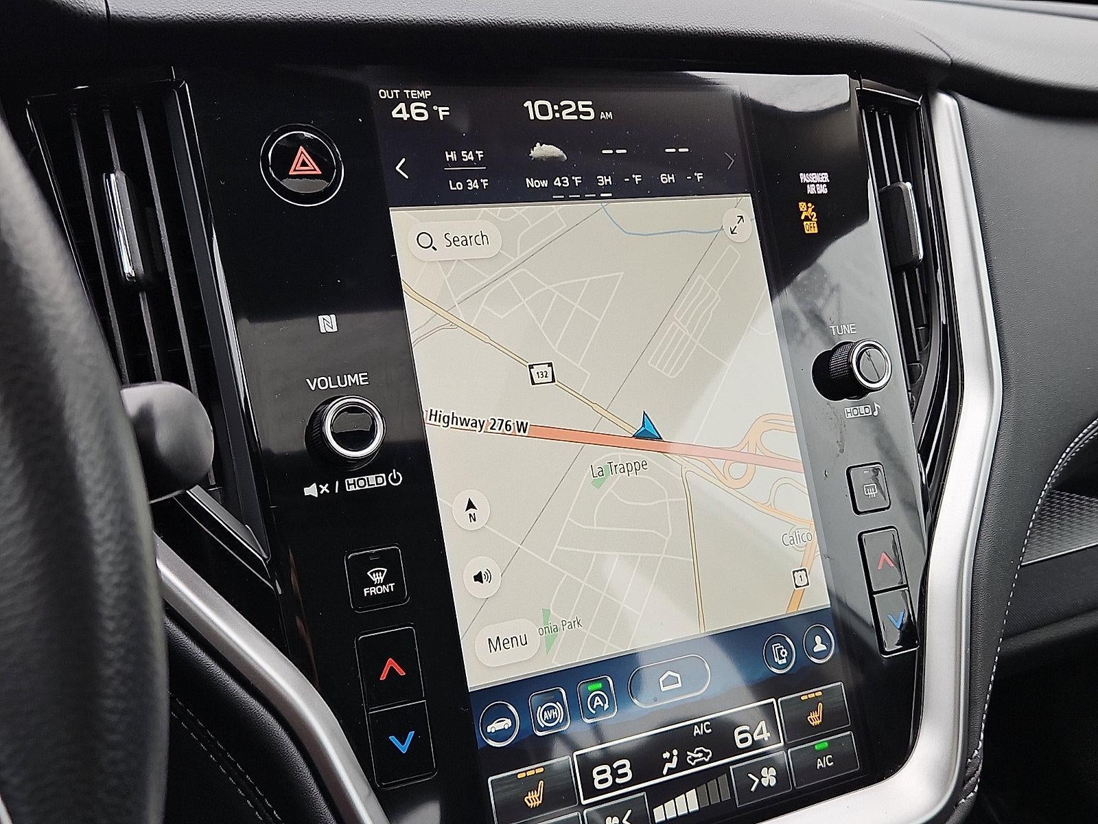 - Radio: Subaru STARLINK 11.6" Multimedia Plus Sys -inc: AM/FM stereo, HD Radio, valet mode, multi-touch gesture high resolution display screen, voice activated controls, Bluetooth® audio streaming and hands-free phone connectivity w/SMS text messaging (refer to subaru.com for cell phone compatibility), Near Field Communication (NFC), iPod control capability, SiriusXM w/360L (4 months free platinum trial/subscription required after; available after launch, possibly in June 2023), SiriusXM Travel Link (4 months free trial/subscription required after), smartphone integration w/full screen view and wireless connection for Android Auto, Apple CarPlay and STARLINK cloud applications (refer to subaru.com for app availability), USB and Over The Air (OTA) audio system update, audio/Bluetooth® steering wheel control switches, 6 speakers, 3.5mm illuminated front auxiliary input jack and illuminated front and rear USB-A and USB-C input/charge ports